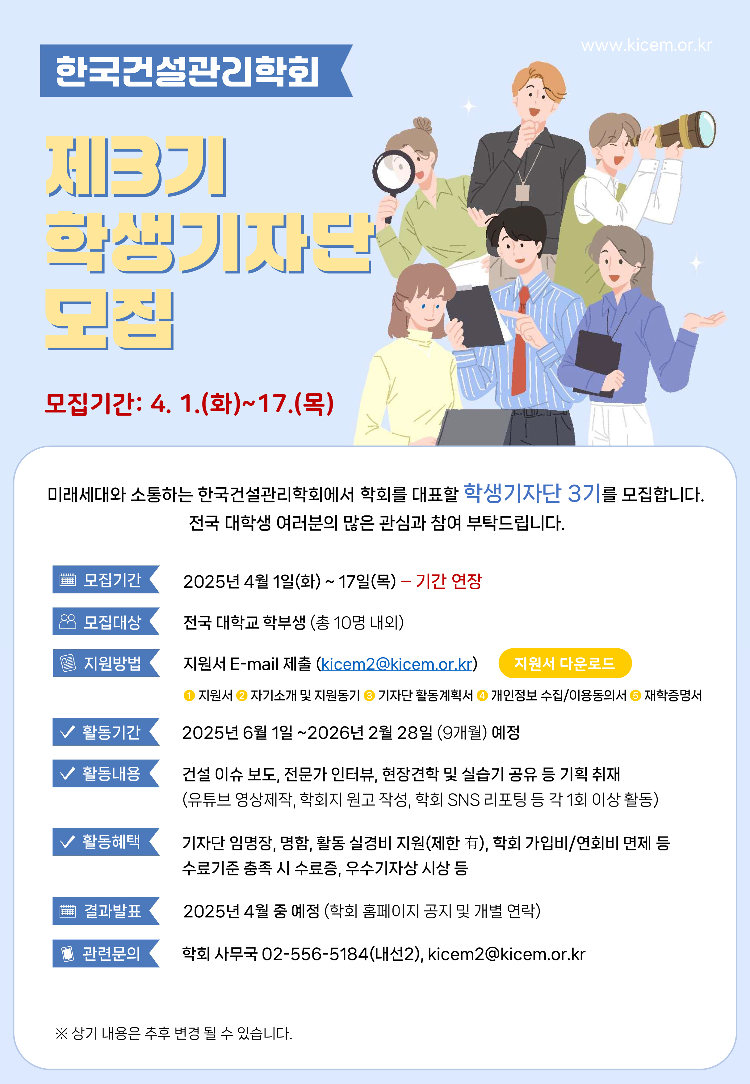 제        목 제3기 학생기자단 모집 (기간연장: ~4/17)