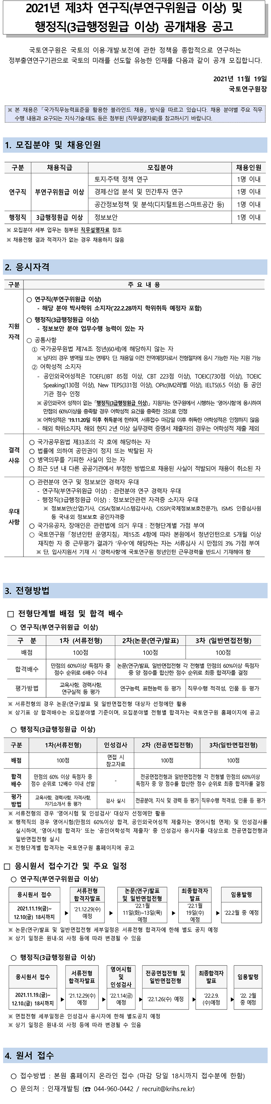 제        목 [국토연구원] 2021년 제3차 연구직 및 행정직 채용공고