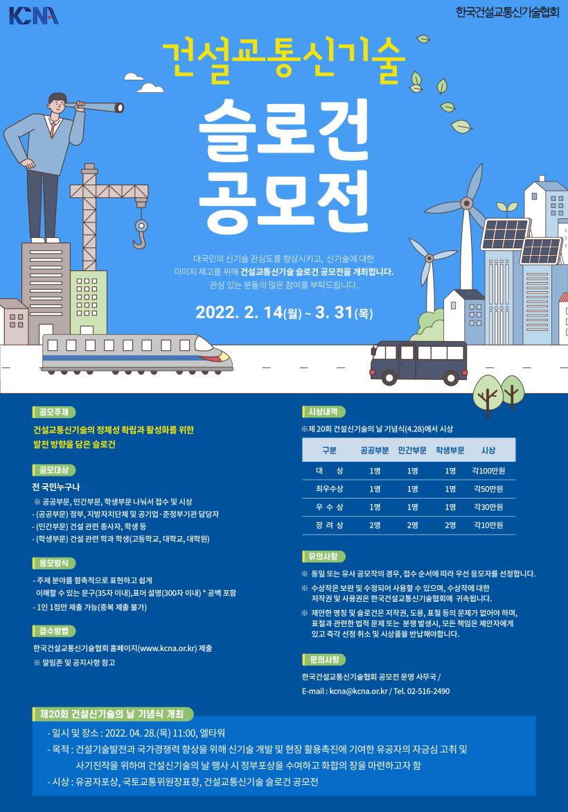 제        목 [신기술협회] 2022년 제3회 건설교통신기술 슬로건 공모전 개최