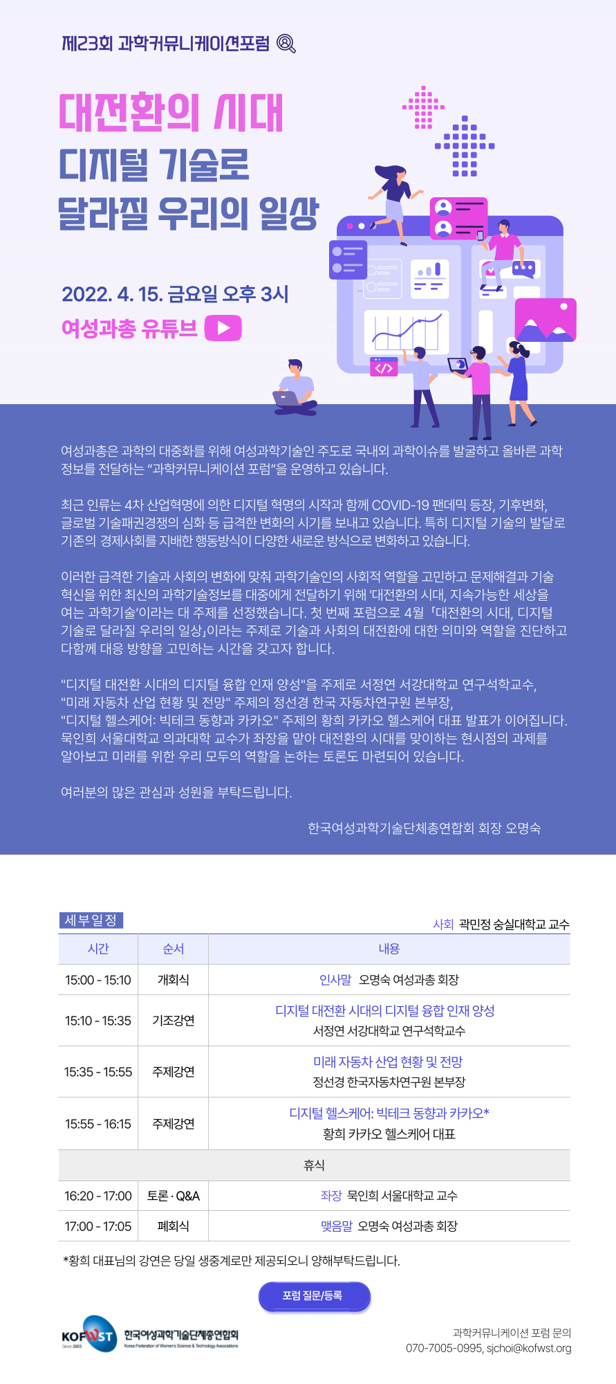 제        목 [여과총] 제23회 과학커퓨니케이션포럼: 대전환의 시대 디지털 기술로 달라진 우리의 일상