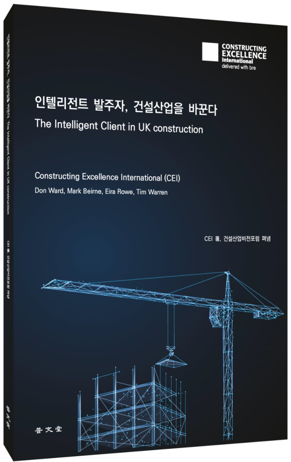 건설산업비전포럼이 지난해 Constructing Excellence International(CEI)와 진행한 연구보고서 “인텔리전트 발주자, 건설산업을 바꾼다”를 출간했습니다. 본서에는 영국 건설산업의 현황과 발주자에 대한 상세한 분석과 함께 발주자들이 추진한 혁신사례, 주요 자료, 인텔리전트 발주자가 되는 방법, 모범사례를 상세히 기술하였습니다. 책은 한글과 영문보고서로 구성되어 있으며, 대량구입(15부 이상)을 원하실 경우 건설산업비전포럼으로 문의 주시기 바랍니다. 도서 구입은 서점에서도 가능합니다. 도서 정보 ● 도서명 : 인텔리전트 발주자, 건설산업을 바꾼다 ● 저자 : CEI, 건설산업비전포럼 ● 번역,정리 : 김한수 세종대학교 교수 ● 페이지 : 256 ● ISBN : 9788984132399 ● 출판사 : 보문당 ● 건설산업비전포럼 : 02-3429-6497, cvf2003@hanmail.net ● 관련기사(e대한경제) : https://www.dnews.co.kr/uhtml/view.jsp?idxno=202207181610274500927