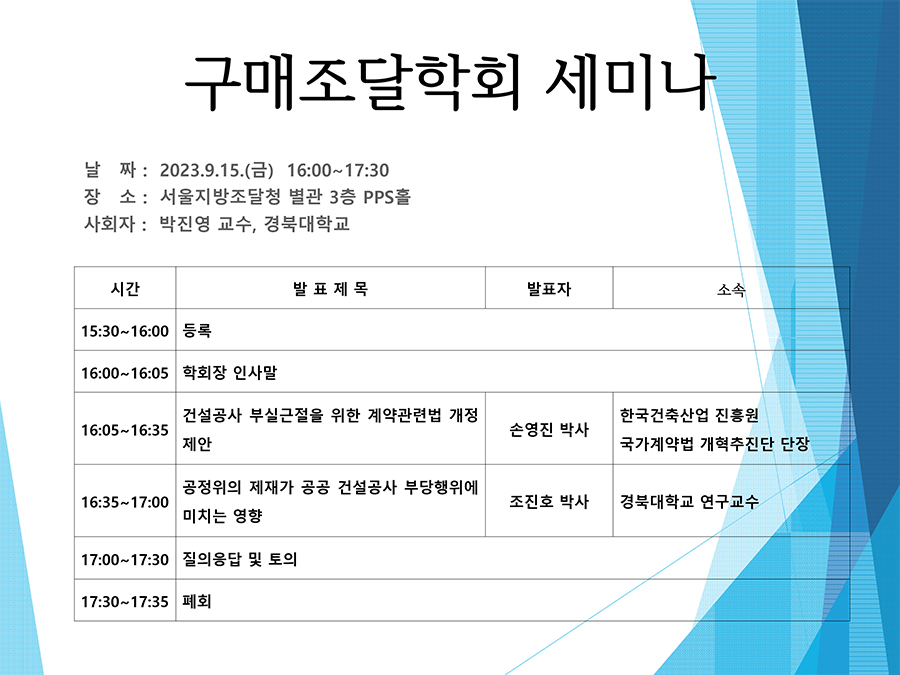 제        목 [한국구매조달학회] 2023년 세미나