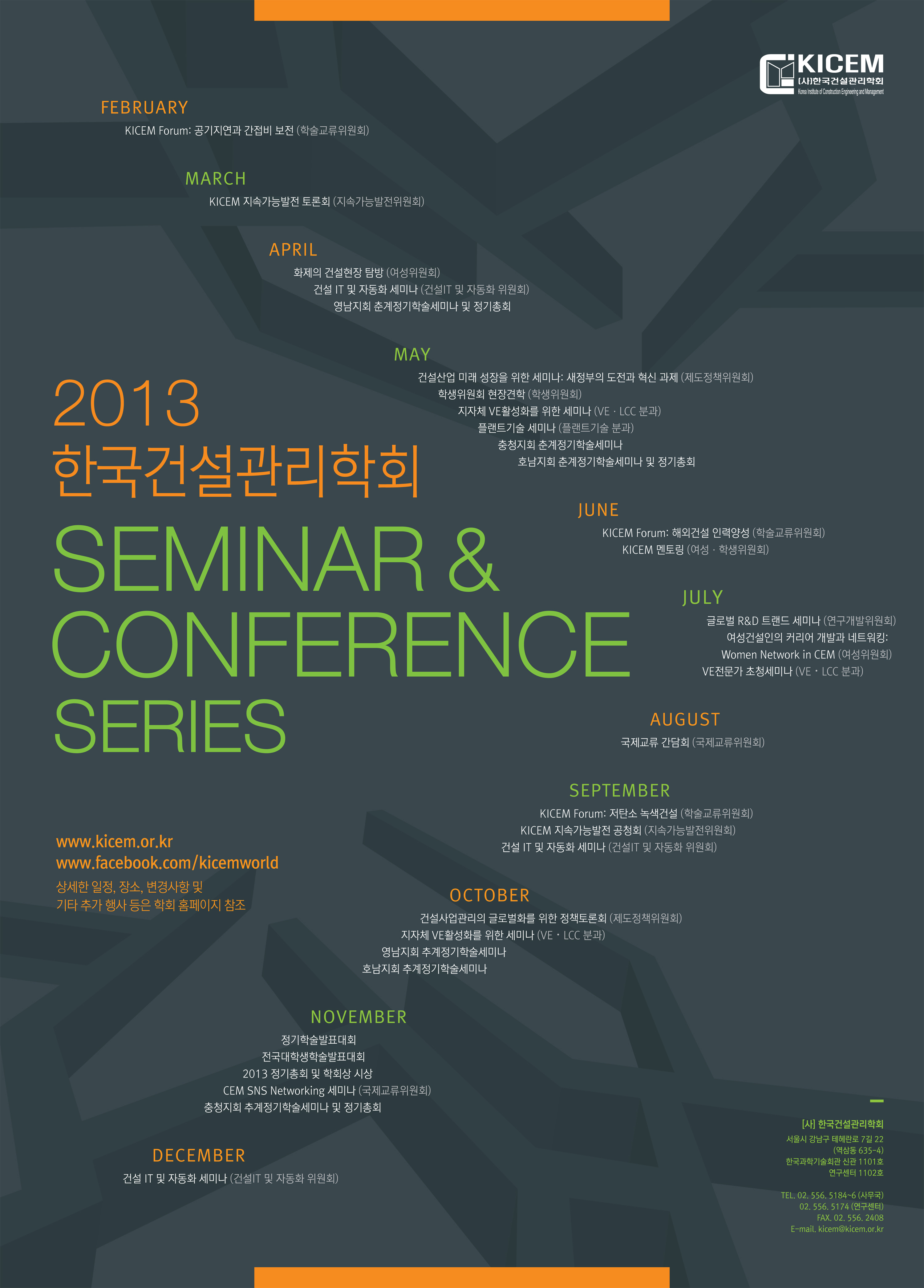 제        목 2013 한국건설관리학회 SEMINAR & CONFERENCE SERIES