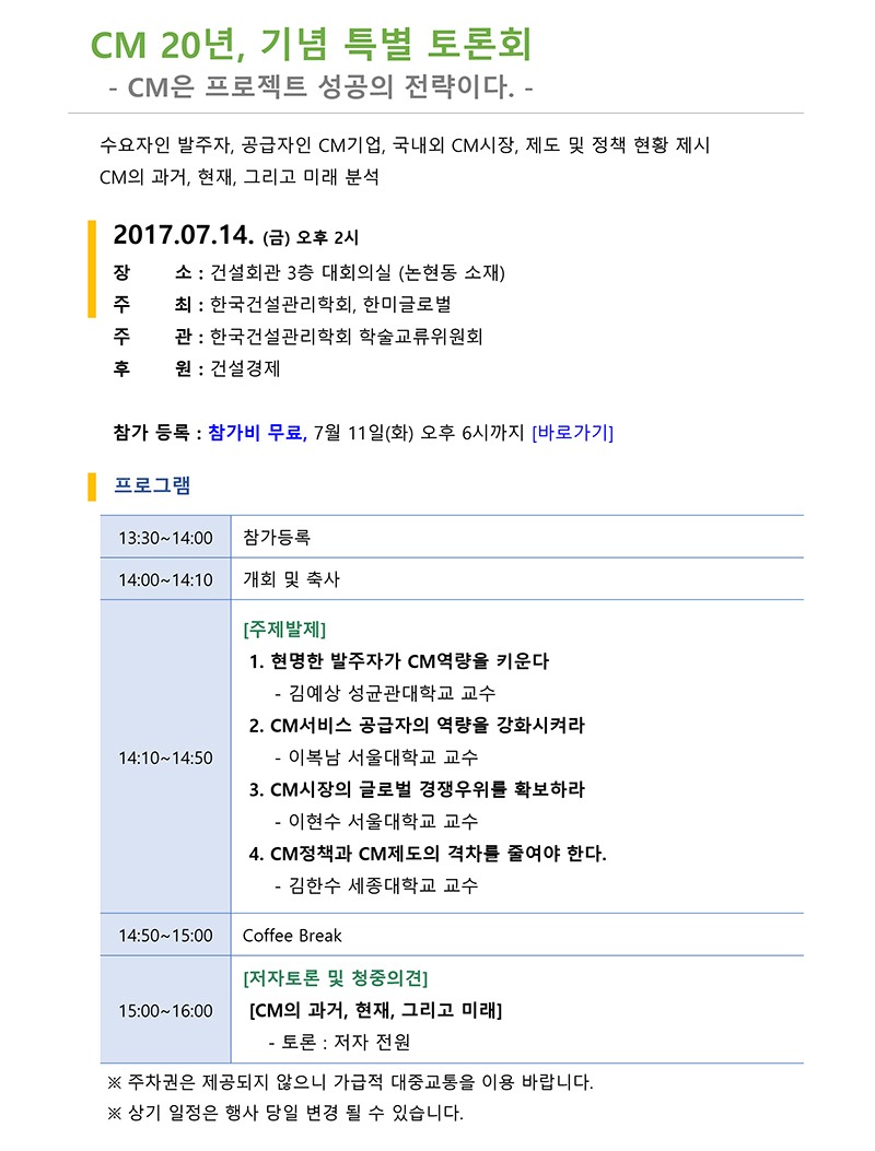 제        목 CM20년 기념 특별 토론회 (7/14)