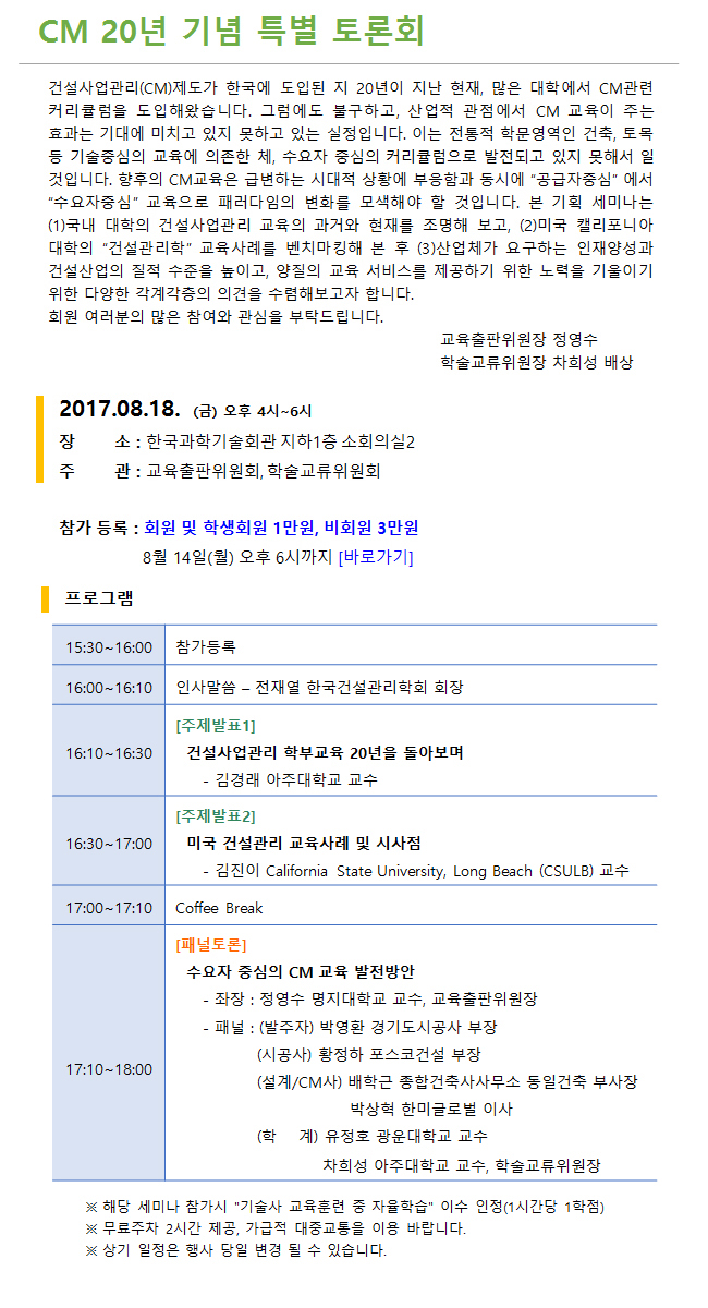 제        목 CM 20년 기념 특별 토론회-3 (8/18)